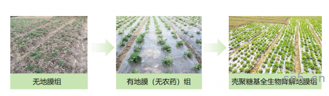 为验证成效,团队在丰润区选取典型地块开展花生种子试点试验,设置三组对照处理。团队连续22天监测花生发芽状况,记录幼苗出土数量与生长态势,汇总最终发芽率:无地膜组64.5%,普通地膜组约82.3%,壳聚糖基全生物降解地膜组高达94.6%。实验数据表明,该地膜借助天然活性物质实现无农残化学驱虫,壳聚糖基材可控降解,协同抑菌护苗,保墒护苗效果优于普通地膜,能提高发芽率、杜绝土壤残留污染,满足农户需求。